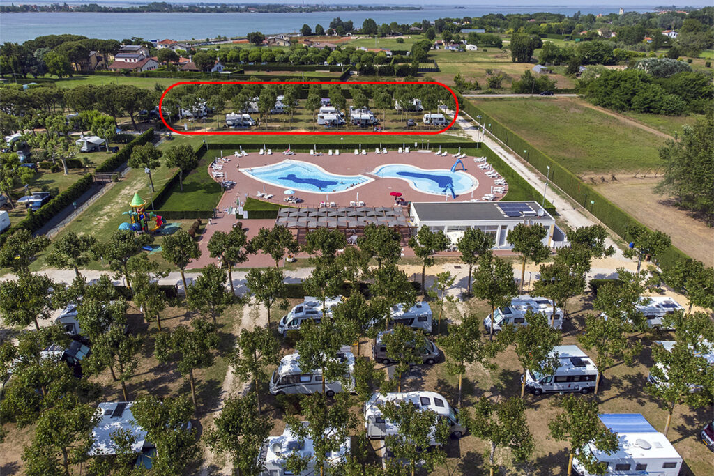 • Baumbestandene Stellplätze in der Nähe des Schwimmbads